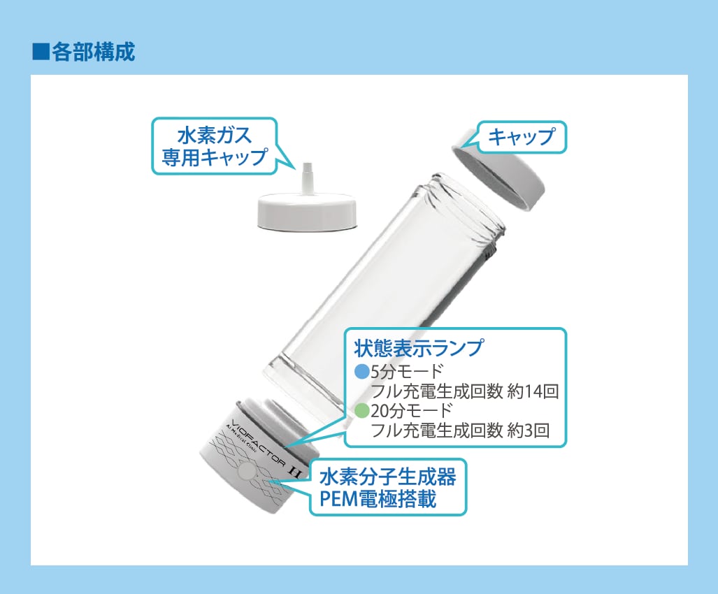 特別機能:圧力感知,分子状水素生成,充電中も生成可能